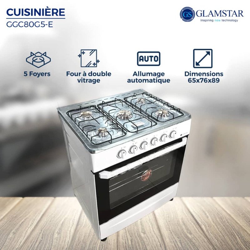 Équipez votre cuisine de la cuisinière automatique Glamstar CGC80G5-E – 5 foyers – grand four, et profitez d’une cuisson rapide, homogène et pratique. Disponible dès aujourd’hui sur lonckmetch-world.com.