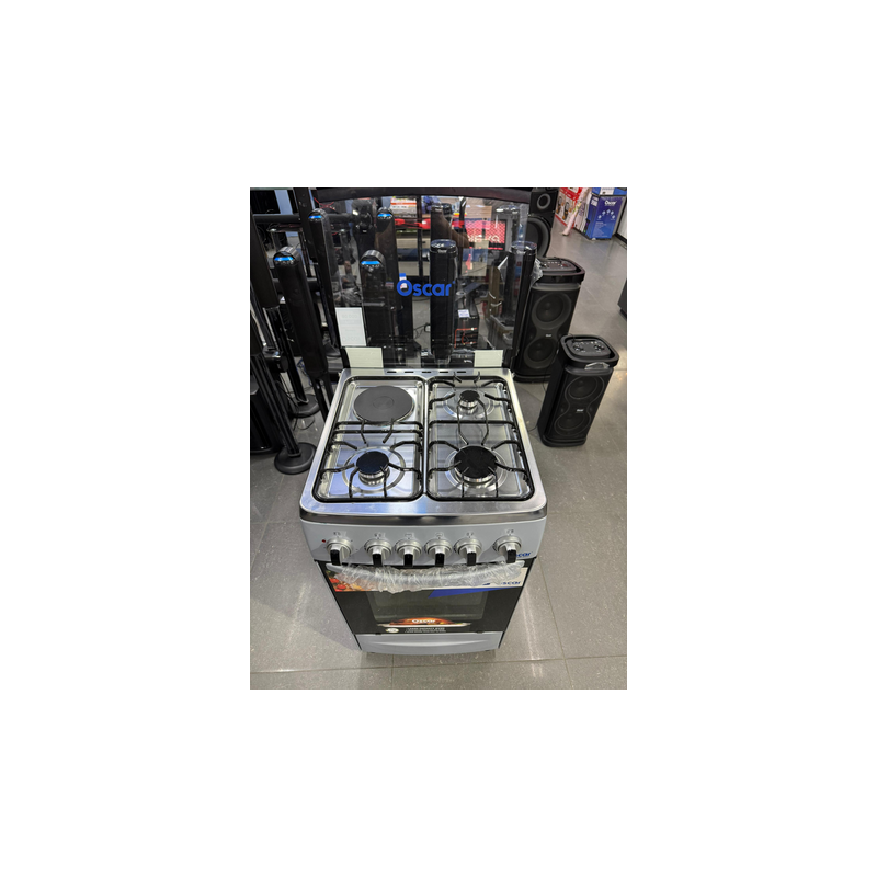 Cuisinière mixte Oscar 50×50 – 3 feux gaz + 1 plaque électrique, Four intégré